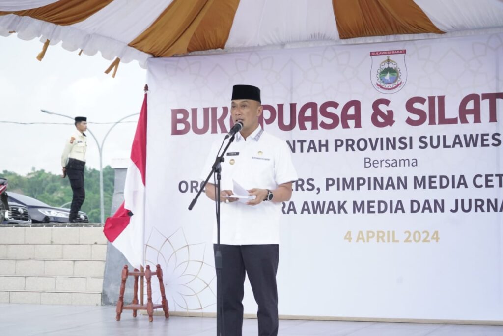 MAMUJU – Pemprov Sulbar melaksanakan buka puasa bersama dengan insan pers di halaman Masjid Baitul Anwar, Kamis 4 April 2024.
