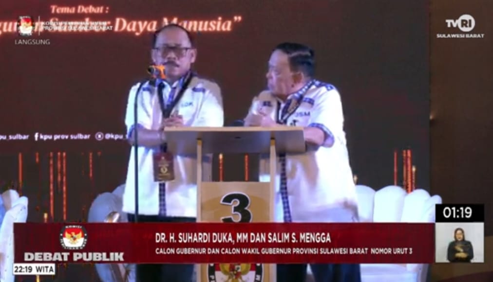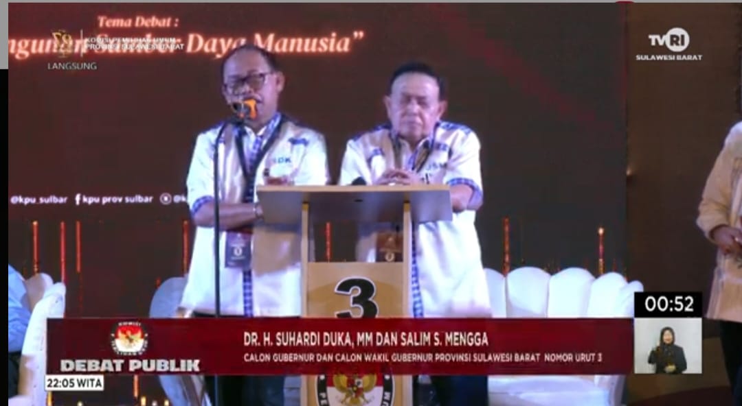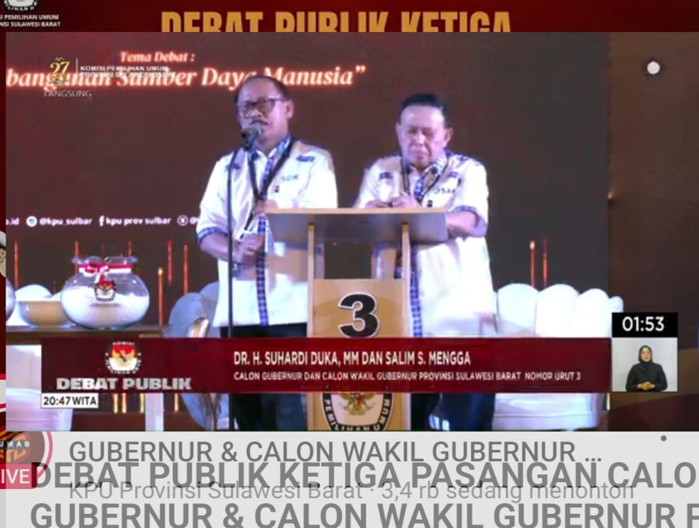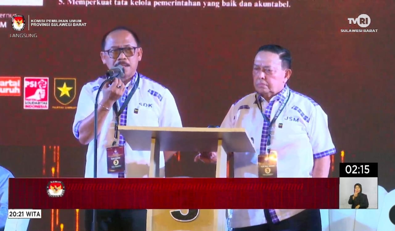 Majene Majene Debat Pamungkas, SDK-JSM Suarakan SDM Maju Sehat, Toleran dan Selamat Tinggal Kemiskinan By Poros Sulbar • November 20, 2024 • MAJENE – poros-sulbar.com. Pada debat pamungkas ketiga Pilkada Sulawesi Barat, Pasangan calon Gubernur dan Wakil...
