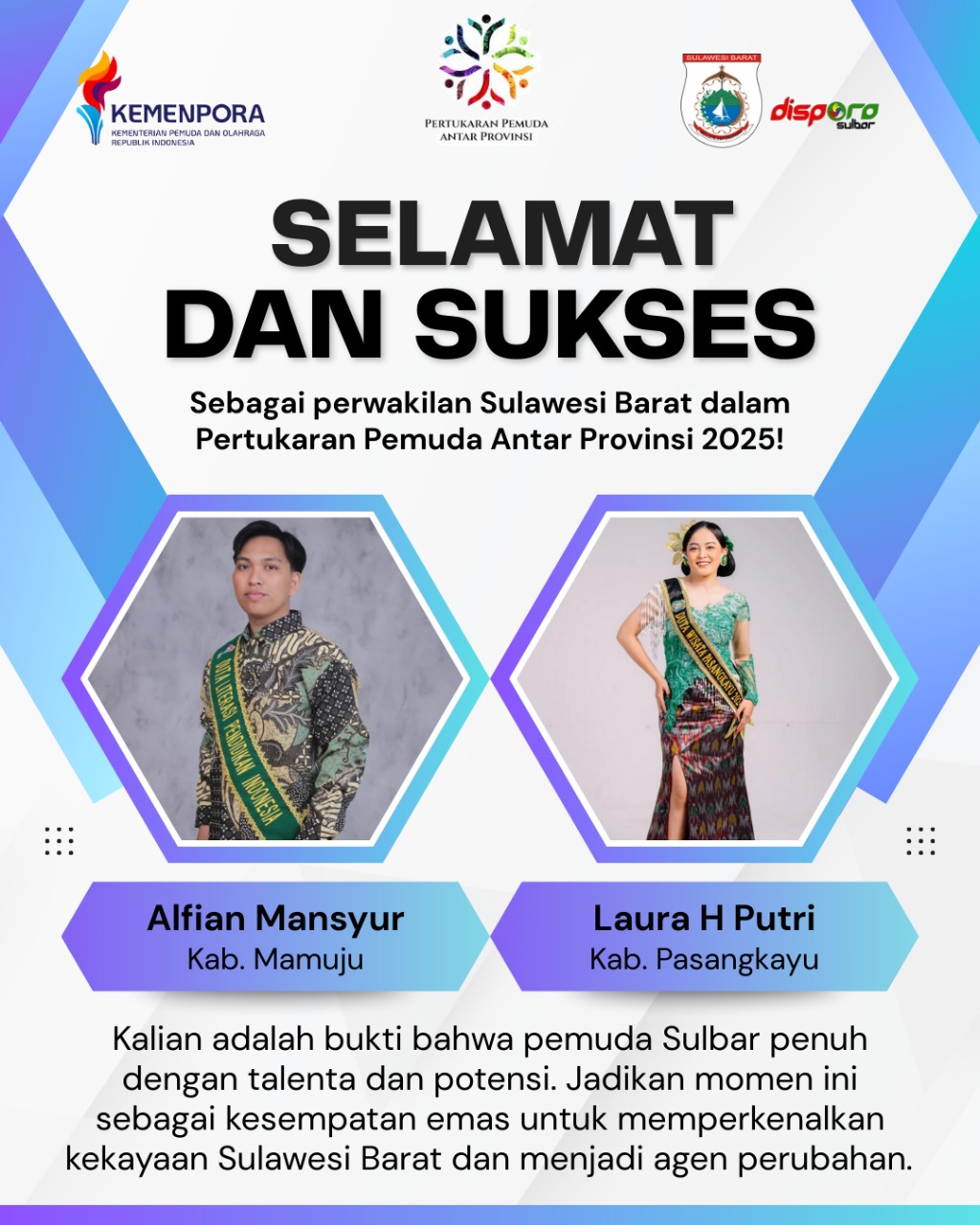 News News Dua Pemuda Sulbar Lolos PPAP 2025, Siap Perkenalkan Potensi dan Kekayaan Budaya Sulbar By Poros Sulbar • September 26, 2025 • Mamuju – Kabar membanggakan datang dari dunia kepemudaan Provinsi Sulawesi Barat (Sulbar). Dua orang perwakilan...