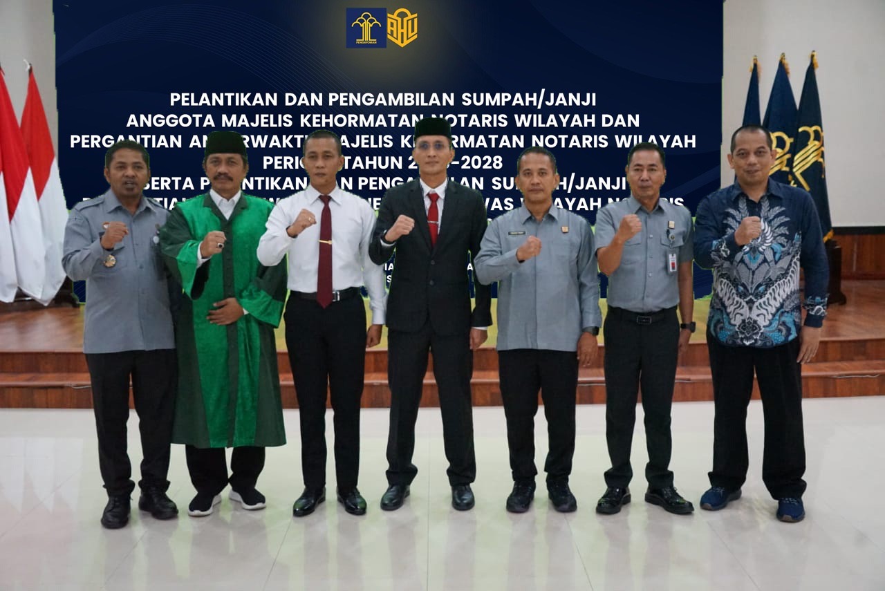 News News Optimalkan Pengawasan Notaris, Kanwil Kemenkum Sulbar Hadiri Pelantikan Anggota MKNW By Poros Sulbar • December 8, 2025 • MAMUJU (8/12/2025) – Kepala Kanwil Kemenkum Sulbar, Sunu Tedy Maranto, didampingi Kepala Divisi Pelayanan Hukum,...