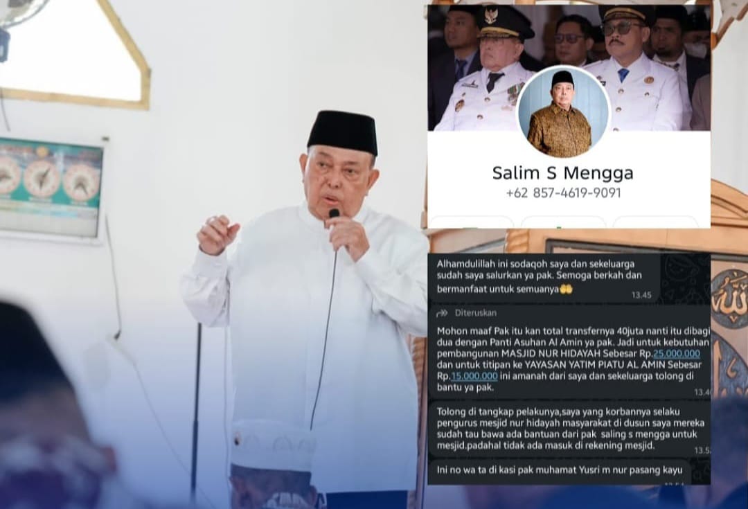 News News Waspada Penipuan! Oknum Catut Nama Wagub Salim untuk Modus Bantuan Palsu Pembangunan Masjid By Poros Sulbar • December 13, 2025 • Mamuju — Modus penipuan dengan mencatut nama pejabat daerah kembali terjadi. Kali ini, seorang pelaku...