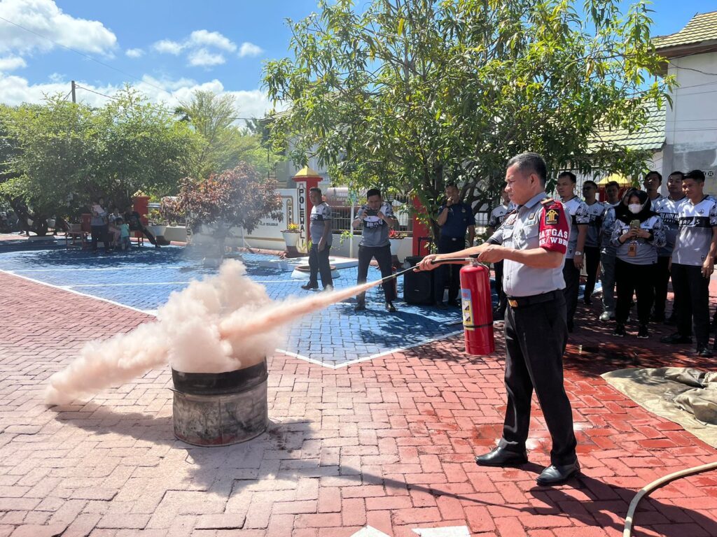Bertempat di halaman kantor Bapas Polewali, Kabapas, Muhammad Basri beserta jajaran mendapat pelatihan langsung dari kordinator lapangan dinas pemadam kebakaran Polewali Mandar, M. Jabir beserta 4 anggontanya.