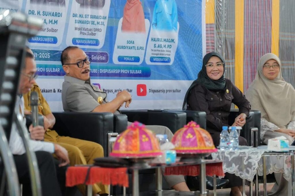 Mamuju – Wakil Ketua DPRD Provinsi Sulawesi Barat (Sulbar), St. Suraidah Suhardi, hadir sebagai narasumber dalam acara Bedah Buku berjudul “SDK Mendayung dari Hulu” Maestro Politik Bertangan Dingin dari Sulawesi Barat, yang diselenggarakan oleh Dinas Perpustakaan dan Kearsipan Daerah (DPKD) Sulbar, Senin, 30 Juni 2025.