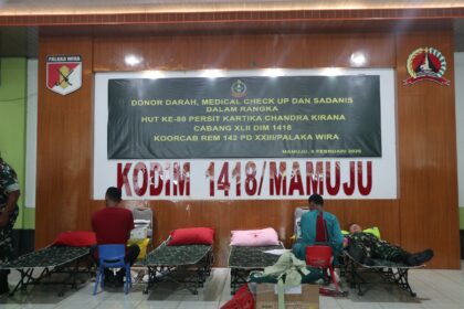 News News Kodim 1418/Mamuju Gelar Donor Darah, MCU dan Sadanis Sambut HUT ke-80 Persit Kartika Chandra Kirana By Poros Sulbar • February 6, 2026 • Mamuju – Kodim 1418/Mamuju melaksanakan kegiatan Donor Darah, Medical Check Up (MCU), dan pemeriksaan Sadanis...