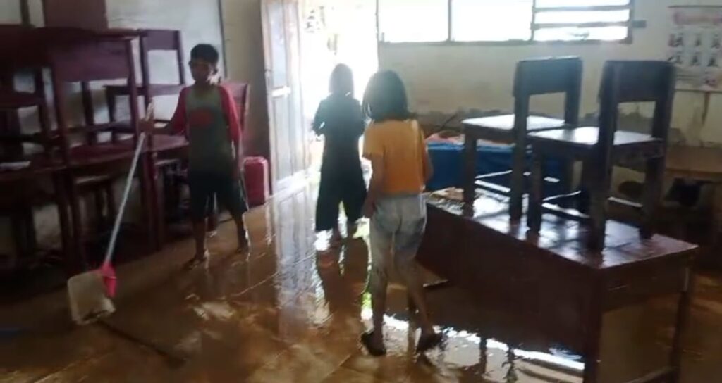 Sejumlah ruang kelas pun penuh lumpur serta buku pembelajaran terendam banjir
