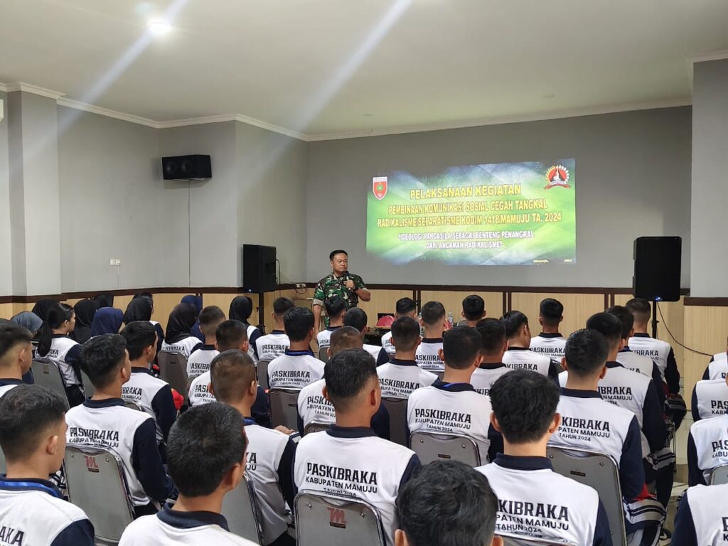 Selanjutnya Dandim 1418/Mamuju menyampaikan Paparan Wawasan Kebangsaan Bela Negara kepada 71 orang Paskibraka, yang intinya Bela Negara adalah Tekad, sikap dan perilaku, serta tindakan warga negara, baik secara perseorangan maupun kolektif dalam menjaga kedaulatan Negara, keutuhan wilayah, dan keselamatan bangsa dan negara, yang dijiwai oleh kecintaannya kepada NKRI yang berdasarkan Pancasila & UUD 1945 dalam menjamin kelangsungan hidup bangsa dan negara dari ancaman.