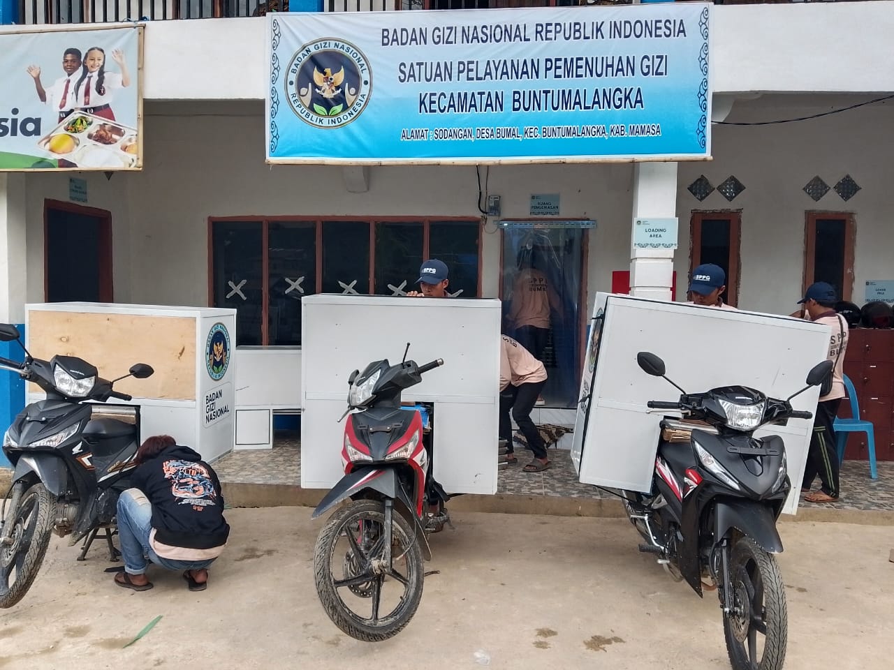 Sebagai wilayah dengan kondisi geografis yang sulit dijangkau, pelaksanaan Program MBG di Mamasa menghadapi tantangan tersendiri, khususnya dalam proses distribusi bahan pangan dan makanan siap saji. Untuk menjangkau para penerima manfaat, SPPG Mamasa Buntumalangka mengoperasikan 6 unit sepeda motor box serta 2 unit mobil operasional.