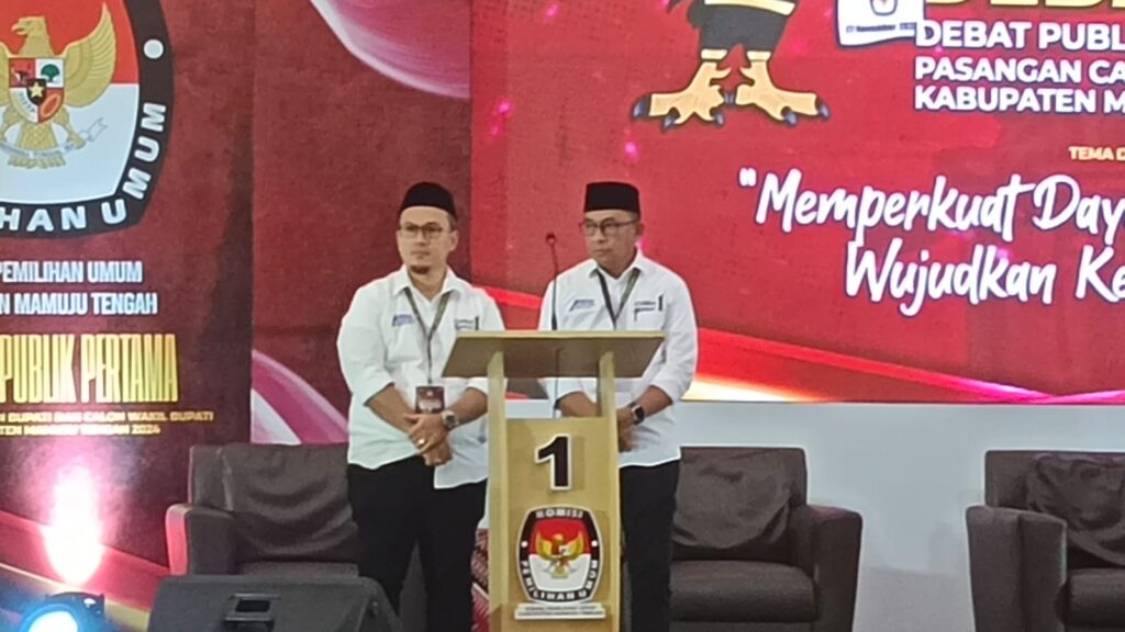 Mamuju – poros-sulbar.com. Pasangan Calon Arsal – Askary Nomor Urut 1 Pada Debat Pertama Calon Bupati dan Calon Wakil Bupati Mamuju Tengah yang di laksanakan KPU Mamuju Tengah di Ballroom Hotel d’Maleo, 16 November 2023