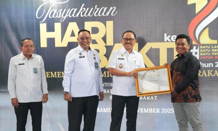 Mamuju, Potretrakyat.com; — Gubernur Sulawesi Barat (Sulbar), Suhardi Duka menghadiri tasyakuran Hari Bakti ke-1 Kementerian Imigrasi dan Pemasyarakatan Kantor Wilayah (Kanwil) Direktorat Jenderal Imigrasi dan Pemasyarakatan Sulbar, Rabu, 18 November 2025.