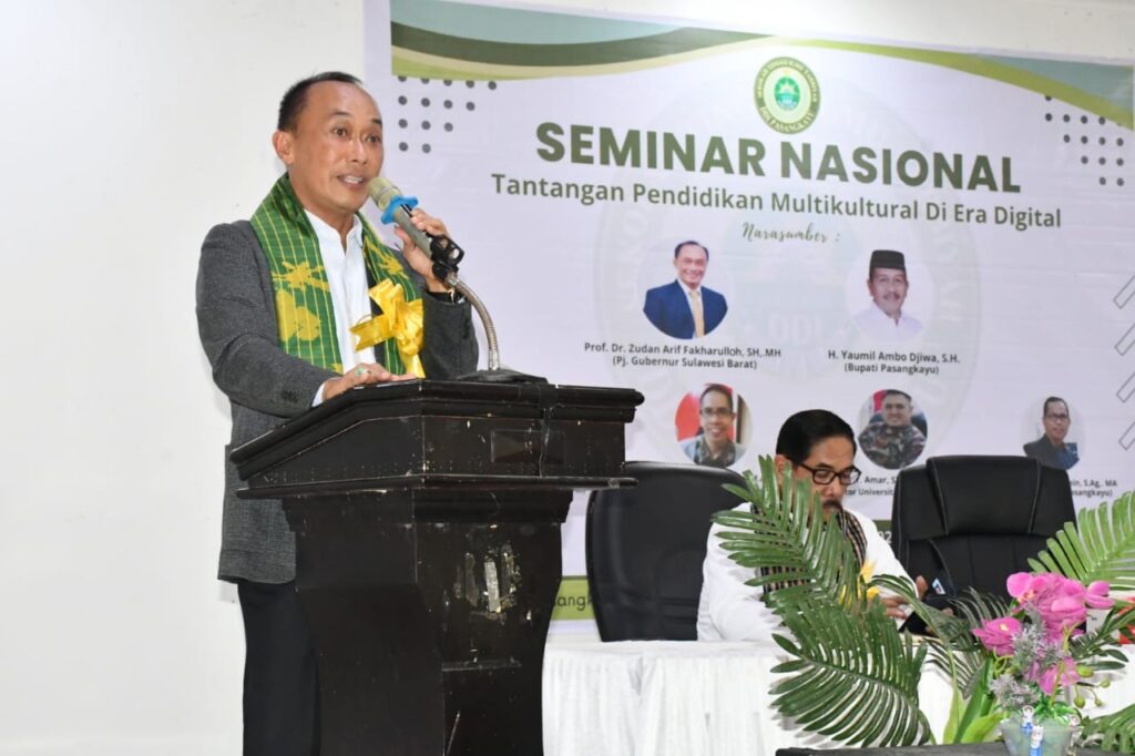 Pasangkayu, –Pj. Prof. Zudan Arif Fakrulloh menjadi narasumber dalam acara Seminar Nasional bertema Tantangan Pendidikan Multikultural di Era Digital yang dilaksanakan oleh Sekolah Tinggi Ilmu Tarbiyah Darurat Dakwah Wal Irsyad Pasangkayu, Rabu (13/03/2024).