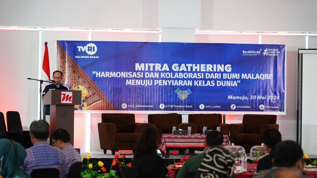 Mamuju,-poros-sulbar.com. TVRI Sulawesi Barat menggelar Mitra gathering dengan tema Harmonisasi dan kolaborasi dari bumi mala’biq menuju siaran kelas dunia. Kegiatan ini dihadiri langsung Direktur Utama TVRI, Iman Brotoseno dan Direktur Pengembangan Usaha TVRI, Retno Wulan K. Purbodjati.
