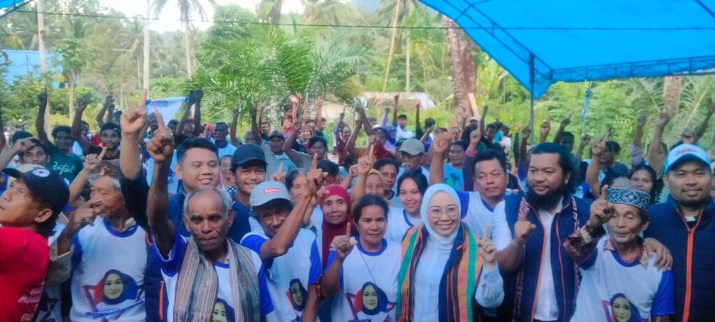 Mamuju – Dr. H. Sitti Sutinah Suhardi, petahana Calon Bupati Mamuju, melaksanakan kampanye terbatas di Desa Salutiwo, Kecamatan Bonehau, pada Senin, 28 Oktober 2024. Setibanya di lokasi, Sutinah disambut antusias oleh warga yang hadir dari berbagai latar belakang suku, termasuk komunitas asal Kupang, Nusa Tenggara Timur (NTT), yang memberi kalungan kain tenun khas Kupang sebagai tanda penghormatan.
