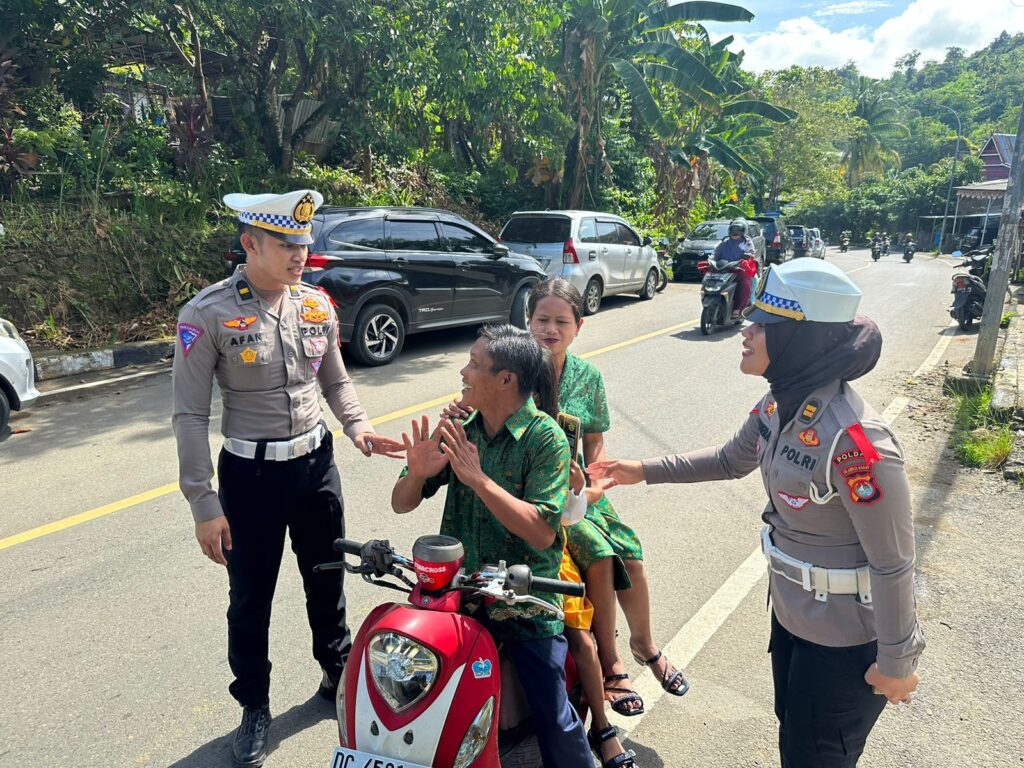 Selamat pagi, Mohon maaf mengganggu perjalanannya bapak/ibu, sapa hormat kedua petugas tersebut, Rabu (22/5/24) di sekitar kota Mamuju.