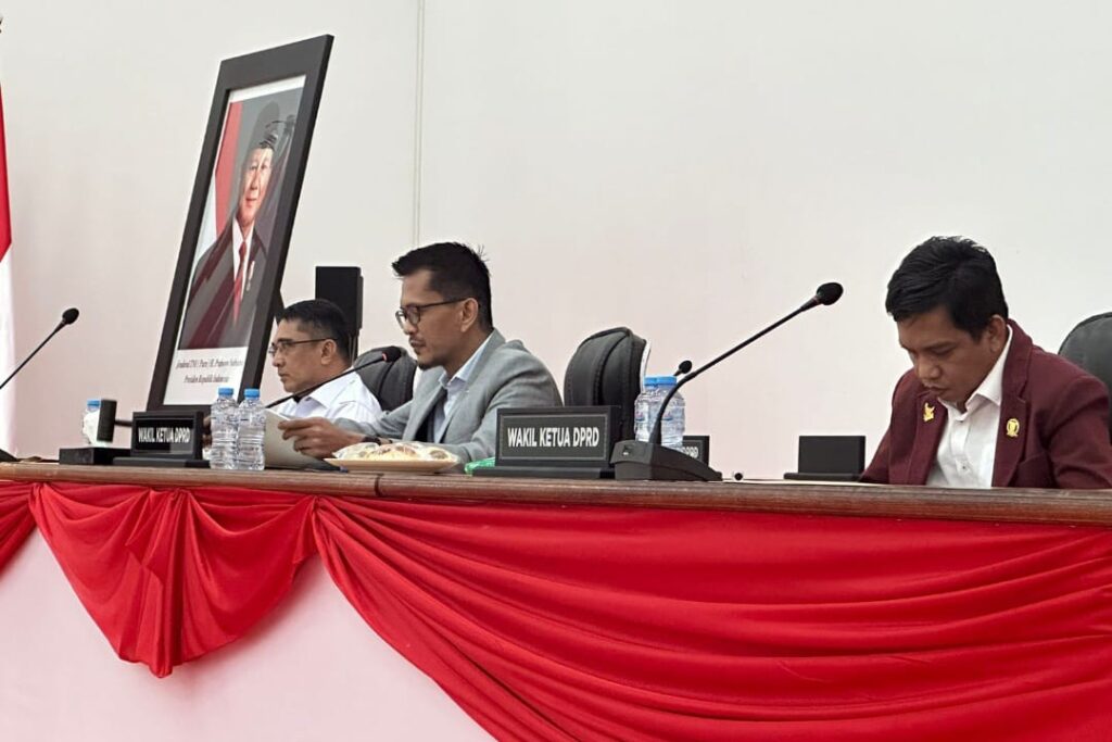 Mamuju – DPRD Provinsi Sulawesi Barat (Sulbar) menggelar Rapat Paripurna dengan agenda mendengarkan Jawaban Gubernur Sulbar terhadap Pemandangan Umum Fraksi-Fraksi atas Rancangan Peraturan Daerah (Ranperda) tentang Penyertaan Modal Daerah pada PT Bank Sulselbar, Rabu (9/7/2025).