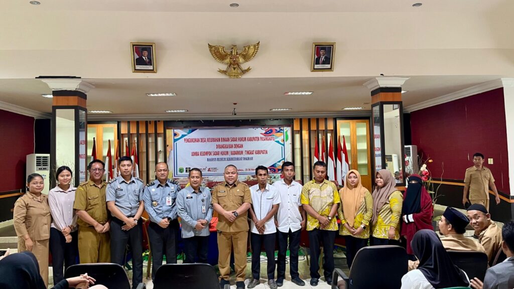 Pasangkayu, 25 Februari 2025 – Kantor Wilayah Kementerian Hukum (Kanwil Kemenkum) Sulawesi Barat memperkuat pembinaan hukum di Kabupaten Pasangkayu melalui penyelenggaraan Lomba Keluarga Sadar Hukum (Kadarkum) tingkat kabupaten dan penyerahan Surat Keputusan (SK) Binaan Kelompok Sadar Hukum dari Bupati Pasangkayu.