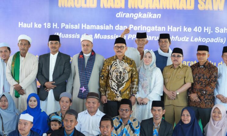 Polman – Gubernur Sulbar Suhardi Duka (SDK) hadiri peringatan Maulid Nabi Muhammad SAW yang dirangkaikan haul ke-18 H. Paisal Hamasiah dan peringatan hari ke-40 Hj. Sahara Haruna (Muassis dan Muassisah PPM Darul Mahfudz Lekopadis), Senin 15 September 2025.