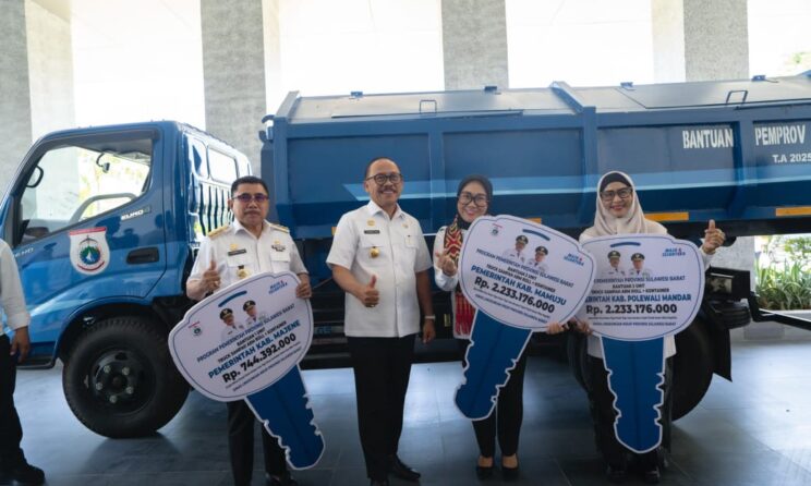 MAMUJU, — Gubernur Sulbar Suhardi Duka menyerahkan Truk Sampah kepada Pemkab Mamuju, Majene dan Polewali Mandar. Penyerahan berlangsung di Kantor Gubernur Sulbar, dan diterima oleh Bupati Majene Andi Achmad Sukri, Bupati Mamuju Sutinah Suhardi dan Wakil Bupati Polewali Mandar Andi Nursami Masdar, Rabu 15 Oktober 2025.