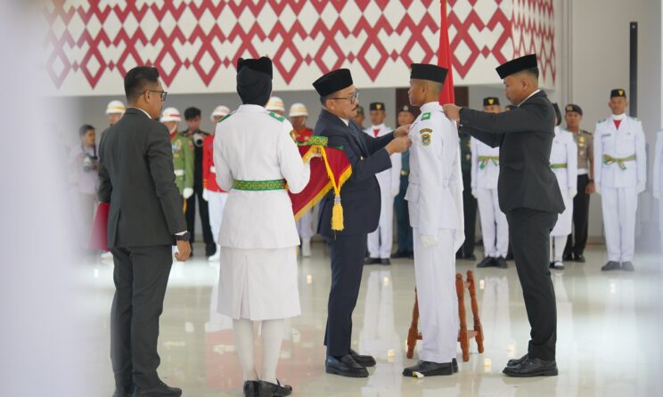 Mamuju – Gubernur Sulbar, Suhardi Duka mengukuhkan 69 Pasukan Pengibar Bendera Pusaka (Paskibraka) tingkat provinsi, Jumat 15 Agustus 2025 malam.
