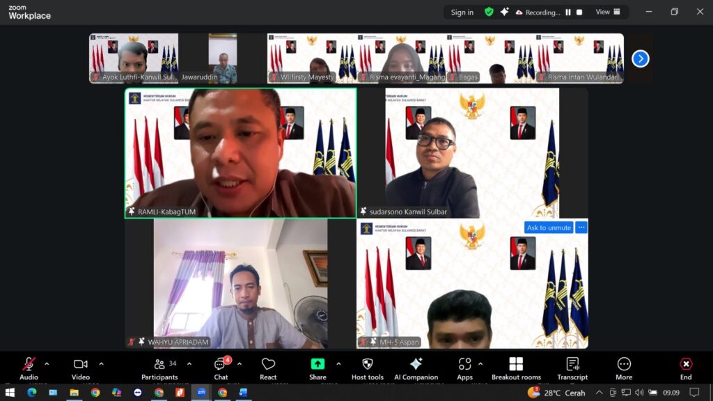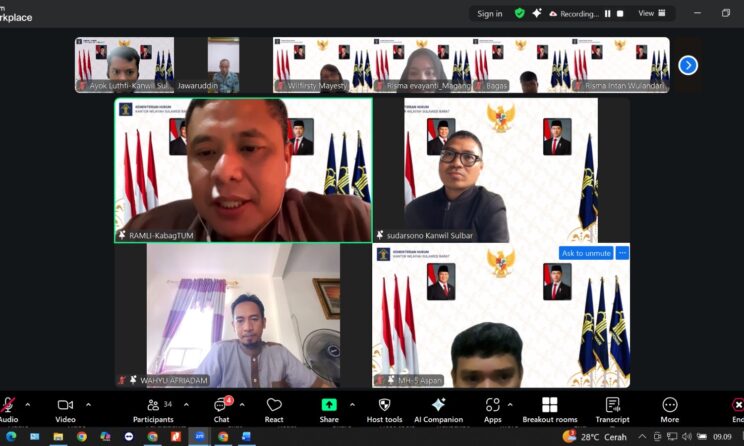 Mamuju, 29 Desember 2025 – Kepala Bagian TU dan Umum Kanwil Kemenkum Sulbar, Ramli, memimpin pelaksanaan rapat yang membahas pelaksanaan layanan fasilitatif dan administratif secara virtual.