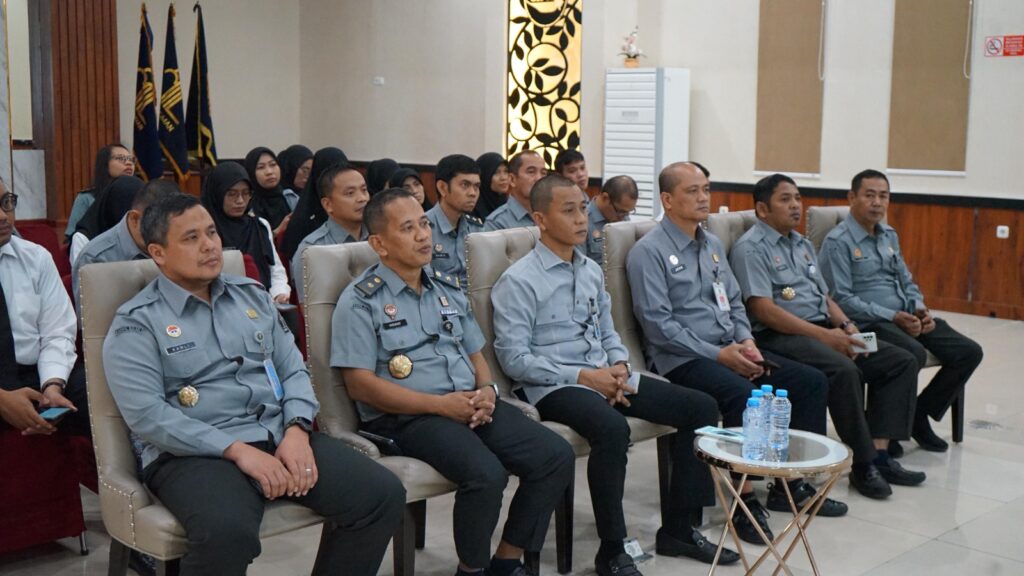 Mamuju – Kakanwil Kemenkum Sulbar, Sunu Tedy Maranto didampingi oleh Kadiv Yankum, Hidayat Yasin dan Kadiv P3H, John Batara Manikallo bersama jajaran menghadiri pelaksanaan Webinar Anti Korupsi secara virtual di Aula Pengayoman, Selasa (19/8/2025).