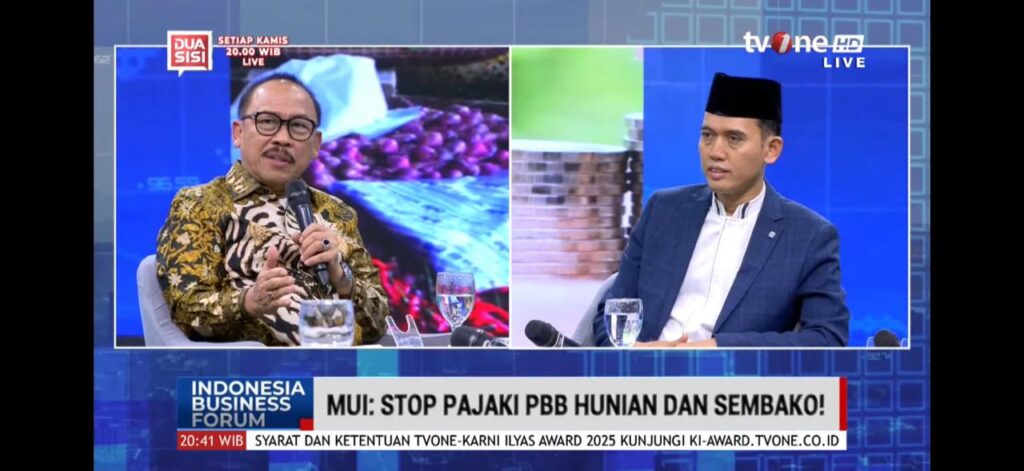 Forum yang mengangkat tema “Stop Pajaki PBB Hunian dan Sembako” tersebut dipandu oleh presenter Celia Alexandra dan juga menghadirkan sejumlah narasumber, antara lain Tenaga Ahli Utama Kantor Staf Kepresidenan (KSP), Muhammad Putra Hutama, Ketua Bidang Fatwa MUI, Prof. Asrorun Niam Sholeh, serta Ekonom Universitas Paramadina, Wijayanto Samirin.