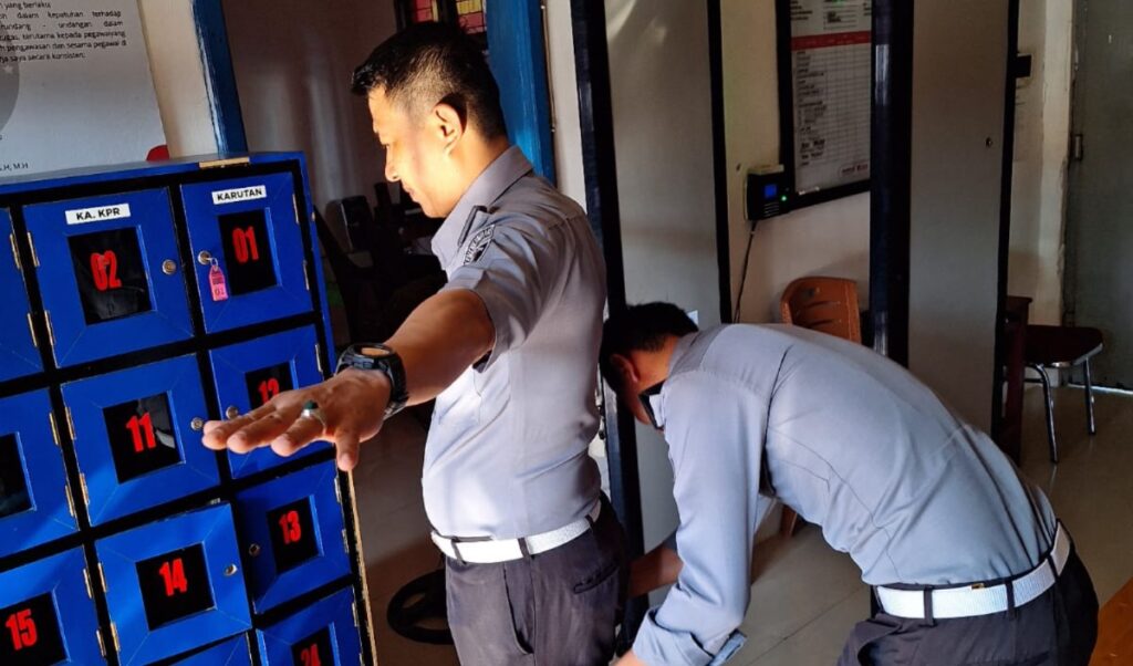 “Seluruh petugas yang masuk ke dalam Rutan wajib digeledah badan maupun barang, sebagai upaya untuk menghindari penyelundupan barang-barang terlarang, penggeledahan pun dilakukan dengan mendetail,” ujarnya.
