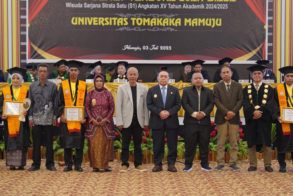 Mamuju – Wakil Gubernur Sulawesi Barat (Sulbar), Salim S Mengga, menghadiri prosesi wisuda sarjana strata satu (S1) angkatan XV tahun akademik 2024/2025 Universitas Tomakaka Mamuju, Kamis, 3 Juli 2025.