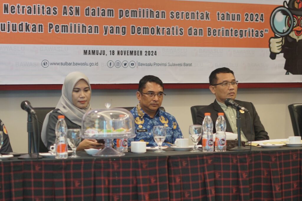 MAMUJU – Pelaksana Harian (Plh) Sekretaris Peovinsi (Sekprov) Sulawesi Barat (Sulbar), Amujib menghadiri Rapat Koordinasi (Rakor) stakeholder dalam rangka menjaga netralitas Aparatur Sipil Negara (ASN), Senin, 18 November 2024.