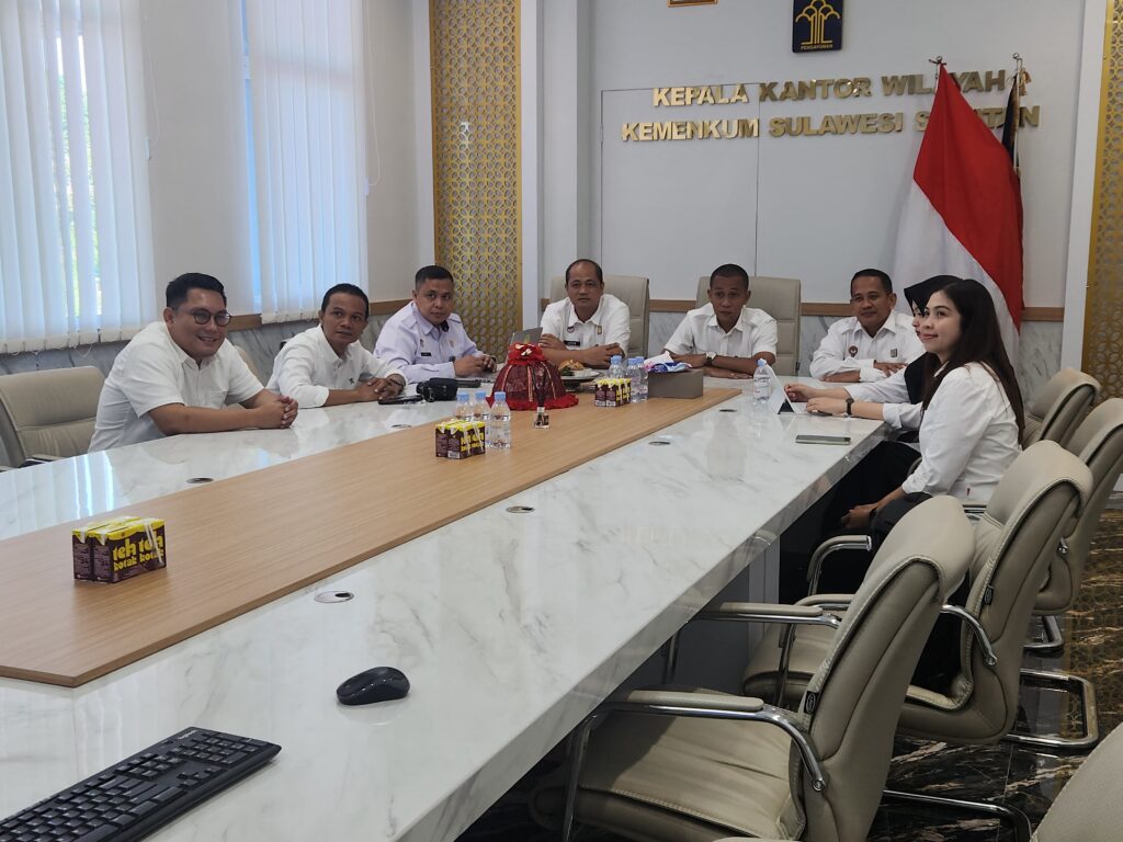 Mamuju– Kakanwil Kementerian Hukum Sulawesi Barat, Sunu Tedy Maranto bersama Kadiv Yankum, Hidayat, Kadiv P3H, John Batara Manikallo bersama sejumlah pejabat menghadiri secara daring Penandatanganan Nota Kesepahaman antara Kementerian Hukum Republik Indonesia dengan 20 (dua puluh) Kementerian/Lembaga Mitra Kerja Sama di Graha Pengayoman Kementerian Hukum Jakarta