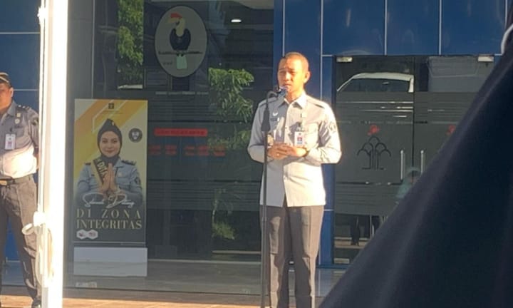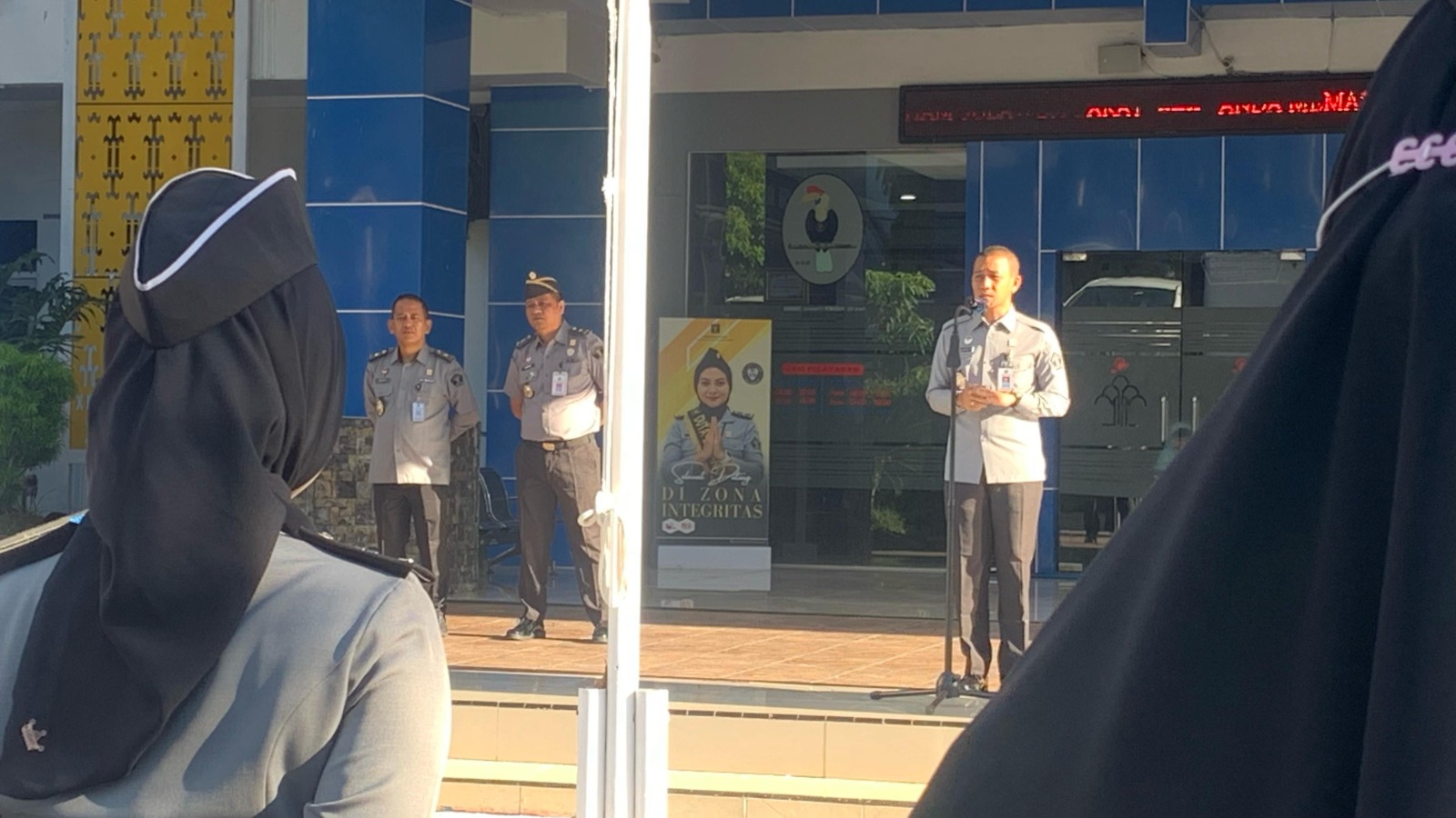 Mamuju – Kepala Kantor Wilayah Kementerian Hukum (Kemenkum) Sulawesi Barat, Sunu Tedy Maranto, memberikan arahan penting dalam apel pagi yang diikuti oleh seluruh jajaran pegawai Kanwil Kemenkum Sulbar. (14/4)