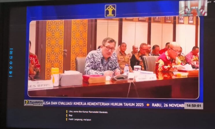 Jakarta, 26 November 2025 – Kakanwil Kemenkum Sulbar, Sunu Tedy Maranto bersama Kadiv P3H, John Batara Manikallo menghadiri secara langsung Rapat Analisis dan Evaluasi Kinerja Kemenkum B11 Tahun 2025 yang diselenggarakan pada Rabu, 26 November 2025.