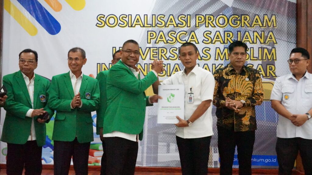 Mamuju, 9 Juli 2025 – Kantor Wilayah Kementerian Hukum (Kanwil Kemenkum) Sulawesi Barat menerima kunjungan pimpinan Program Pascasarjana Universitas Muslim Indonesia (UMI) Makassar. Kunjungan ini disambut langsung oleh Kepala Kantor Wilayah (Kakanwil) Kemenkum Sulawesi Barat, Sunu Tedy Maranto, didampingi Kadiv P3H, John Batara Manikallo, dan Kabag TU dan Umum, Ramli beserta seluruh jajaran di Aula Pengayoman.