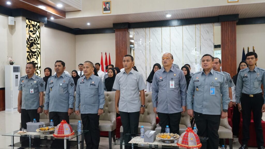 lMamuju, 30 September 2025 – Kakanwil Kemenkum Sulbar, Sunu Tedy Maranto bersama Kadiv Yankum, Hidayat Yasin, Kadiv P3H, John Batara Manikallo beserta seluruh jajaran menghadiri Serah Terima Jabatan dan Pelepasan Inspektur Jenderal Kementerian Hukum secara virtual di Aula Pengayoman.