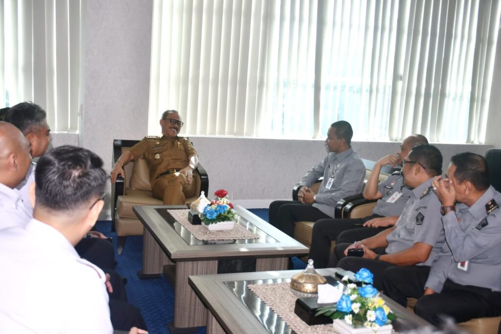 Mamuju – Kepala Kantor Wilayah (Kakanwil) Kementerian Hukum (Kemenkum) Sulawesi Barat (Sulbar), Sunu Tedy Maranto, bersama Kadiv P3H, John Batara Manikallo, didampingi Kepala Bidang Kekayaan Intelektual (KI) dan Kepala Bidang Administrasi Hukum Umum (AHU), melakukan audiensi dengan Gubernur Sulawesi Barat, Suhardi Duka di ruang kerjanya.