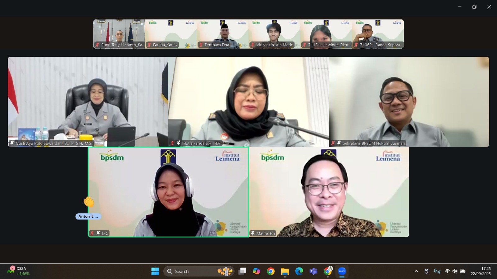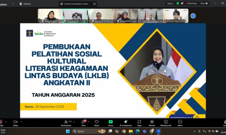 Mamuju, 22 September 2025 – Kakanwil Kemenkum Sulbar, Sunu Tedy Maranto dan Kadiv P3H John Batara Manikallo mengikuti Pelatihan Sosial Kultural Literasi Keagamaan Lintas Budaya (LKLB) Angk. II Tahun 2025 secara virtual.
