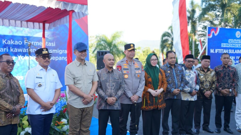 Mamuju, Sulawesi Barat – Kepala Kantor Wilayah Kementerian Hukum (Kakanwil Kemenkum) Sulawesi Barat, Sunu Tedy Maranto, menghadiri pelepasan ekspor biji kakao ke Jepang yang diselenggarakan di pelataran Kantor Gubernur Sulawesi Barat pada Jumat (18/7/2025). Kehadiran Kakanwil sebagai dukungan terhadap upaya pengembangan sektor pertanian dan peningkatan investasi di wilayah tersebut. Hal ini merupakan wujud komitmen untuk mendukung investasi di bidang pertanian.