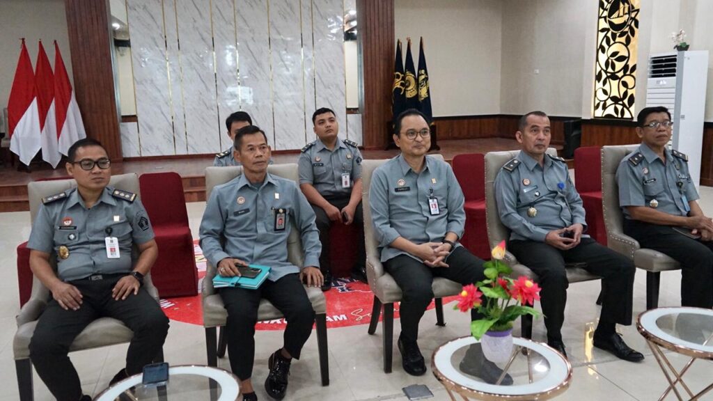 Mamuju – Kepala Kantor Wilayah Kementerian Hukum dan HAM Sulawesi Barat, Pamuji Raharja bersama Kepala Divisi Administrasi Rudi Hartono beserta jajaran menghadiri Pembukaan Evaluasi Indikator Kinerja Pelaksanaan Anggaran Semester I TA 2024 secara virtual, Selasa (23/7/2024).
