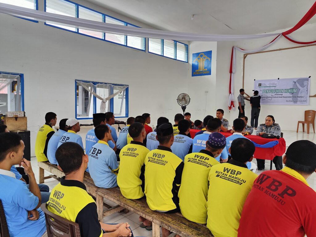 Terkait dengan itu, tim Kantor Wilayah Kementerian Hukum dan HAM Sulawesi Barat melaksanakan Penyuluhan Hukum dan Monitoring dan Evaluasi Bantuan Hukum di Rutan Kelas IIB Mamuju, Senin (8/7/2024).