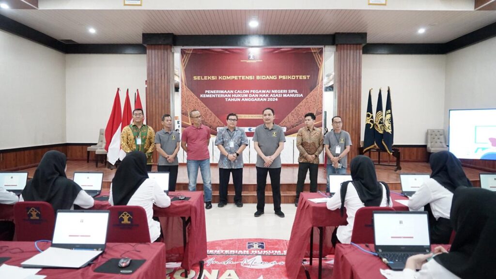 Mamuju – Kepala Kantor Wilayah Kemenkumham Sulawesi Barat, Pamuji Raharja meninjau langsung situasi dan kondisi ujian tes SKB Psikotes dan Kesehatan Calon Pegawai Negeri Sipil (CPNS), Kamis (21/11/2024).