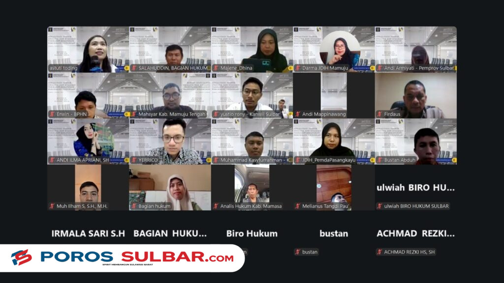 MAMUJU – Kantor Wilayah Kementerian Hukum Sulawesi Barat (Kanwil Kemenkum Sulbar) terus mendorong peningkatan kualitas sumber daya manusia analis hukum melalui kegiatan Sharing Knowledge Pedoman Analisis dan Evaluasi Peraturan Perundang-undangan yang digelar secara hybrid, Kamis (5/3/2026).