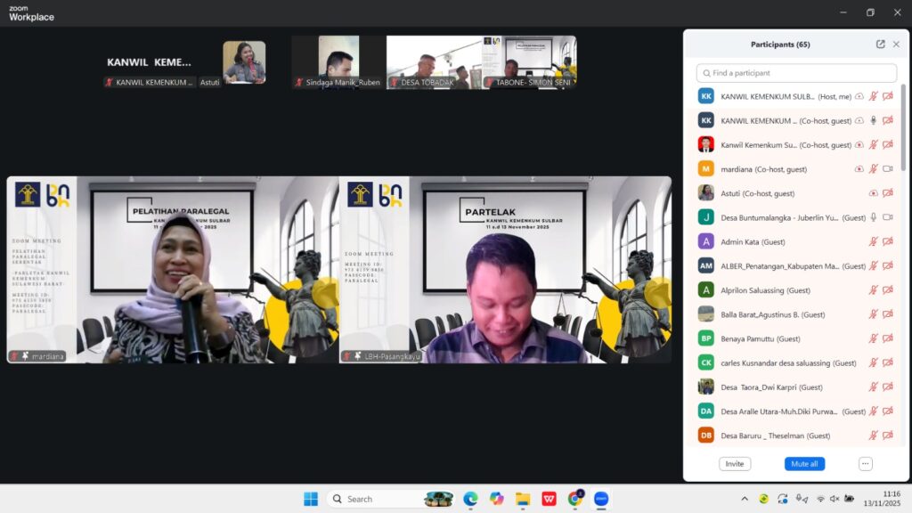 Mamuju, 13 November 2025 – Kepala Divisi P3H, John Batara Manikallo berharap agar Paralegal memahami Undang – Undang Nomor 1 tahun 2023 tentang KUHP.