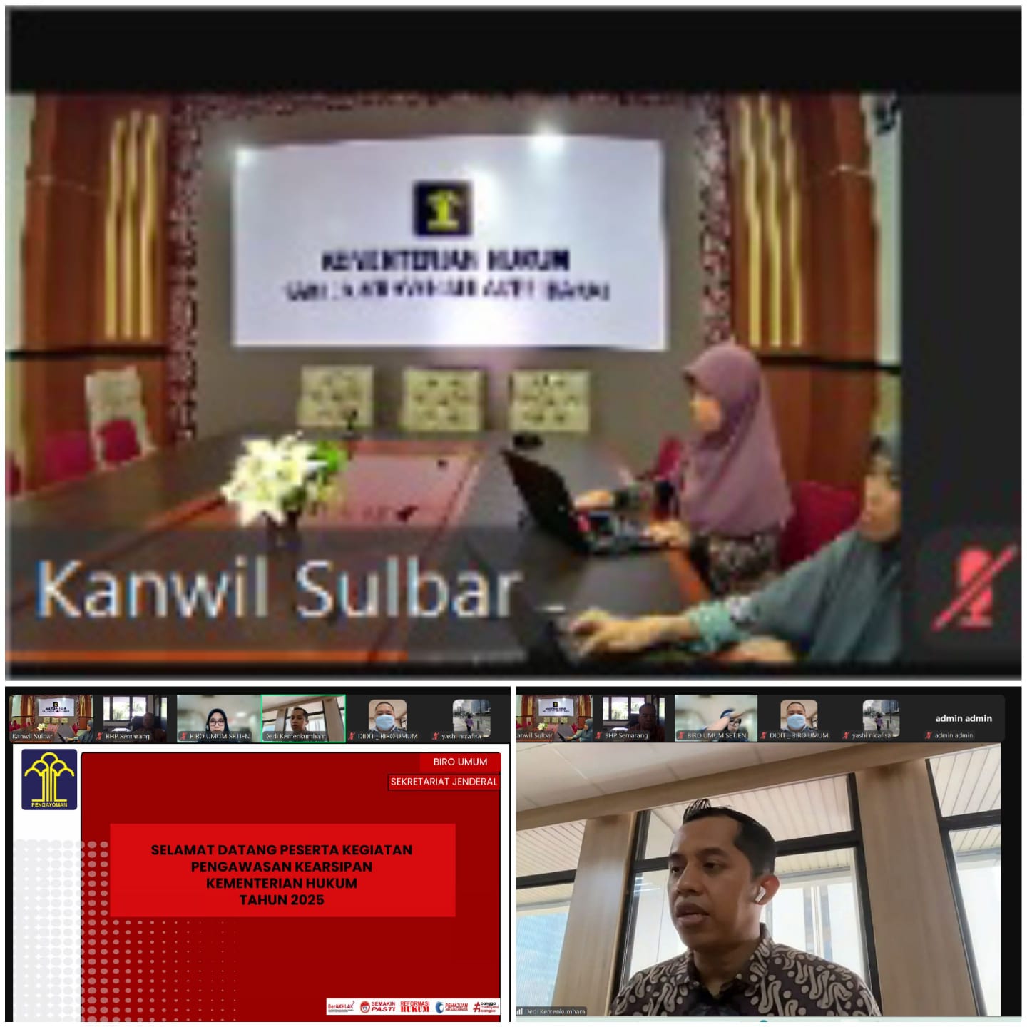 Mamuju – Kantor Wilayah Kemenkum Sulbar menghadiri pengawasan kearsipan Biro Umum Sekretariat Jenderal Kementerian Hukum (Kemenkum). Kegiatan ini dilaksanakan secara hybrid pada Jumat, 21 Maret 2025 di Ruang Rapat Seno Aji .
