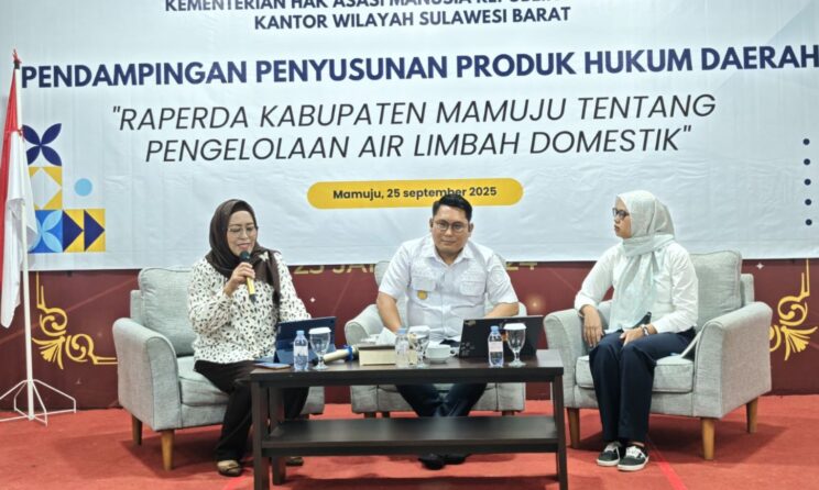 Mamuju, 25 September 2025 – Kanwil Kemenkum Sulbar melaksanakan pendampingan Penyusunan Rancangan Produk Hukum Daerah dari Perspektif HAM dengan objek Rancangan Peraturan Daerah Kabupaten Mamuju tentang Pengelolaan Air Limbah Domestik.