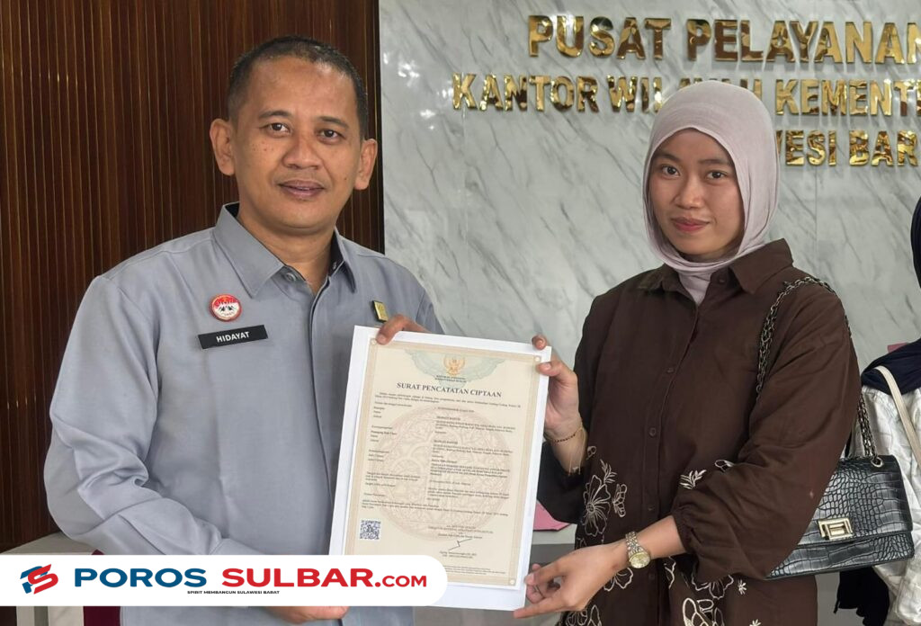 Sebagai bentuk pelayanan prima, sertifikat pencatatan hak cipta diserahkan secara langsung oleh Kepala Divisi Pelayanan Hukum Kanwil Kemenkum Sulbar, Hidayat Yasin, kepada para mahasiswa.