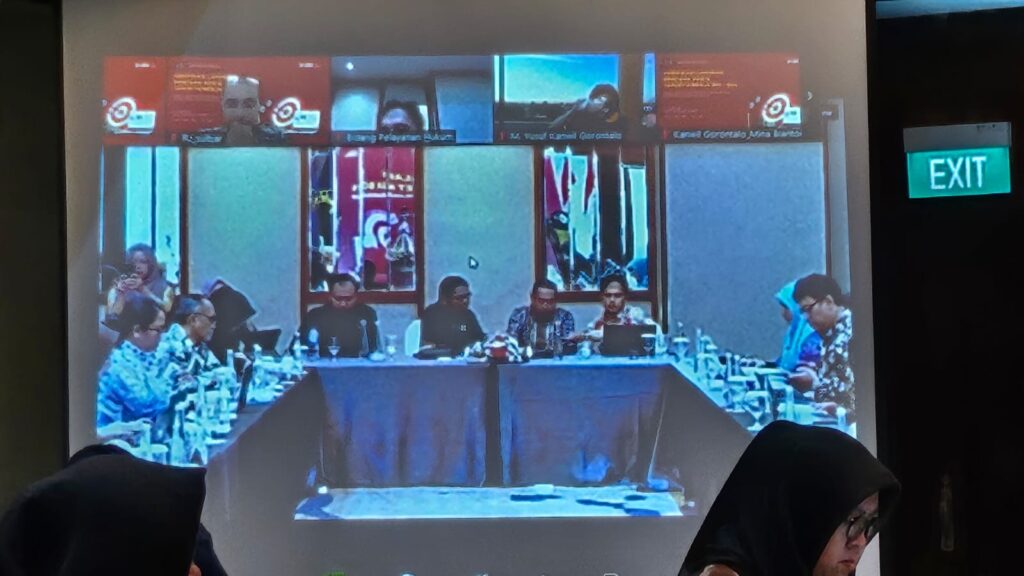 Pelaksanaan kegiatan itu dihadiri secara langsung oleh Kepala Bidang Pelayanan Hukum, Wardi Kepala Subbidang Pelayanan Kekayaan Intelektual, Juani beserta Staf Subbidang Pelayanan Kekayaan Intelektual, sedangkan Kepala Divisi pelayanan hukum dan HAM mengikuti kegiatan tersebut secara daring.