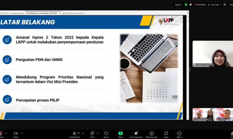 MAMUJU, 23 Juli 2025 – Kantor Wilayah Kementerian Hukum Sulawesi Barat menghadiri Sharing Edukatif dan Ngobrol Inspiratif Pengadaan Barang/Jasa (SENI PBJ) Kementerian Hukum Tahun 2025 Batch 3. Acara itu mengusung tema “Perubahan Kebijakan E-Purchasing Pasca Perpres 46/2025” ini diselenggarakan secara daring melalui platform Zoom Meeting.