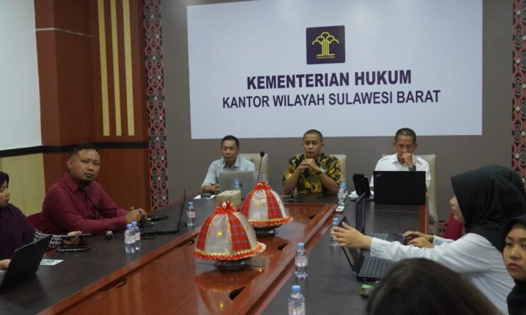 Kakanwil Kemenkum Sulbar, Sunu Tedy Maranto didampingi Kadiv Yankum, Hidayat Yasin dan Kabid Pelayanan Kekayaan Intelektual bersama sejumlah jajaran menghadiri Training of Trainer (ToT) yang diselenggarakan oleh Ditjen KI.