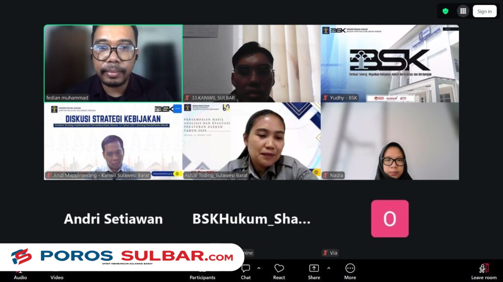 Terkait hal tersebut, Kantor Wilayah Kementerian Hukum Sulawesi Barat terus memperkuat pelaksanaan AIEK melalui Forum Komunikasi Kebijakan yang digelar secara daring melalui Zoom Meeting, Senin (13/4). Kegiatan ini diikuti oleh Koordinator Badan Strategi Kebijakan (BSK), analis kebijakan, analis hukum, serta PIC AIEK Kanwil Sulbar.