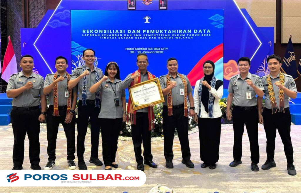 Penghargaan tersebut diserahkan langsung oleh Inspektur Jenderal Kemenkum kepada Kepala Kantor Wilayah (Kakanwil) Kemenkum Sulbar, Saefur Rochim, Senin (26/01/2026).
