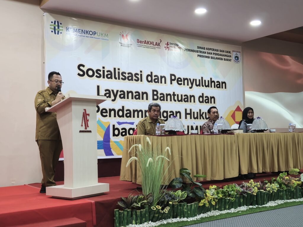 Kegiatan yang berlangsung di Hotel Aflah Mamuju dilaksanakan dalam rangka Pengembangan Usaha Kecil dengan Orientasi Peningkatan Skala Usaha Menjadi Usaha Menengah yang diadakan oleh Dinas Perdagangan, Perindustrian, Koperasi dan UKM Provinsi Sulawesi Barat yang mana dilaksanakan dalam bentuk kegiatan Sosialisasi dan Penyuluhan Layanan Bantuan dan Pendampingan Hukum bagi Pelaku UMK Angkatan I.